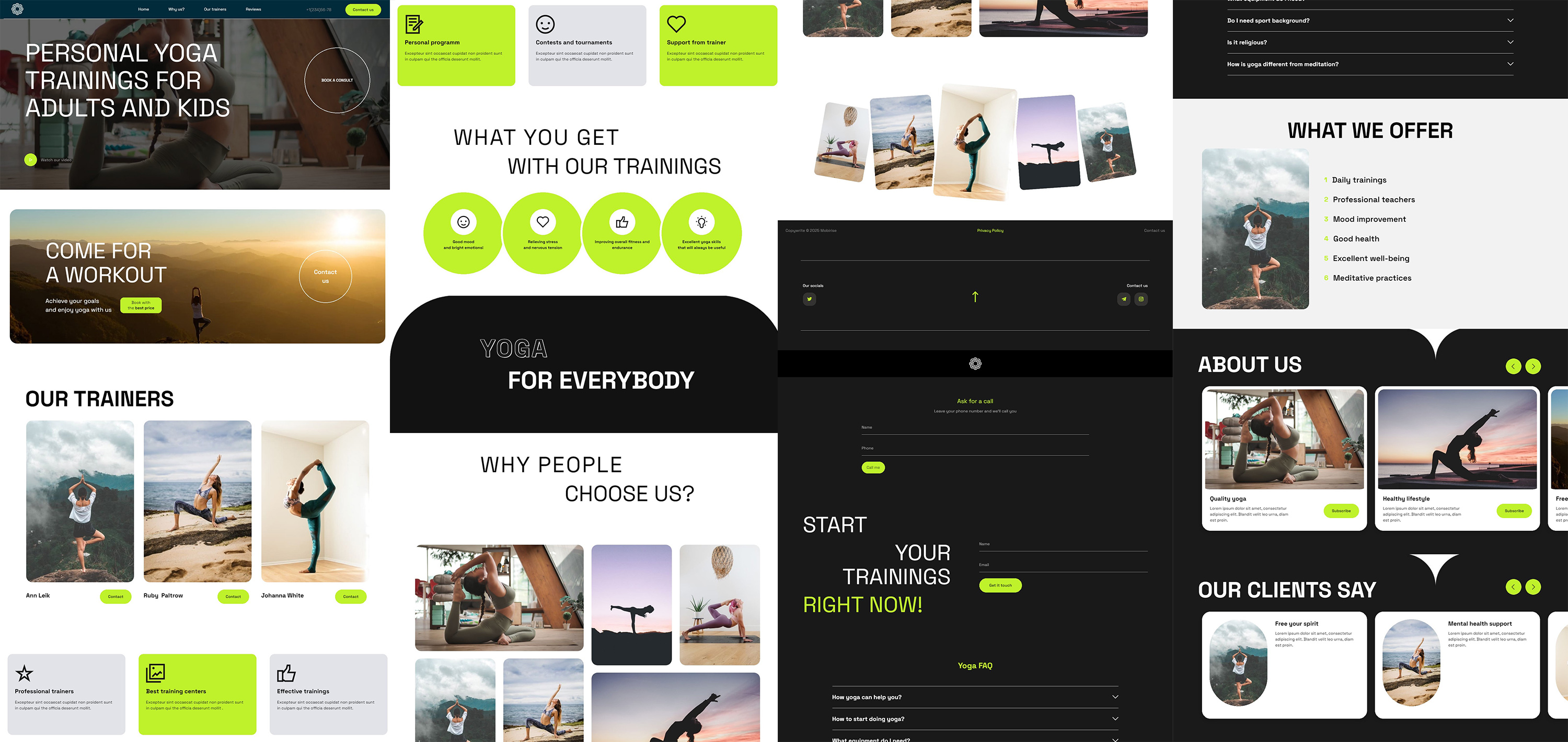 YogaM5 is a theme for a fitness studio, fitness center, gym, meditation class, yoga coaches, personal trainer, fitness club, rehabilitation center, massage therapist. YogaM5 comes with bootstrap 5 blocks and an adaptive, attractive design, making it ideal for almost any such type of business.