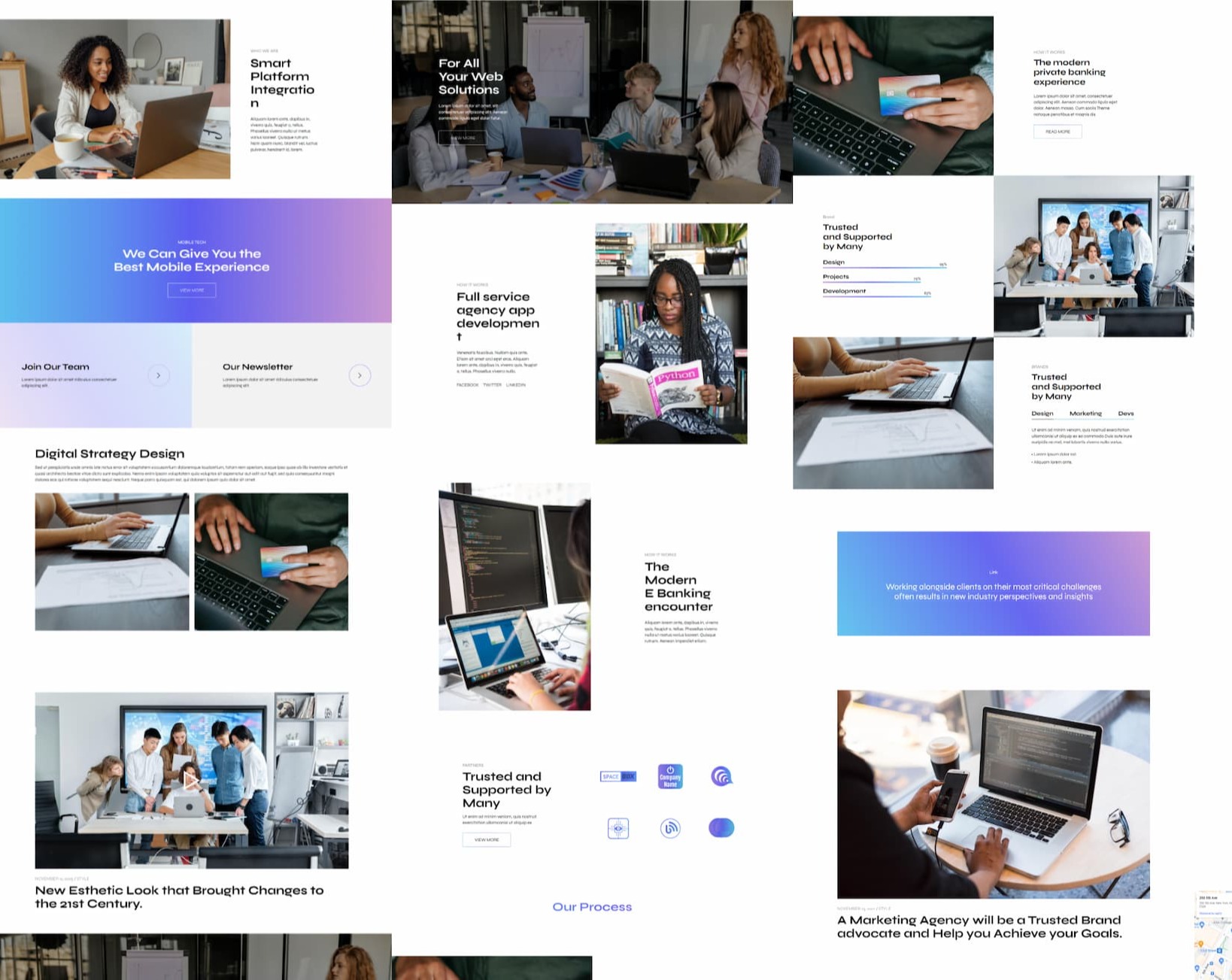 NetworkM5 comes with a set of Bootstrap 5 blocks for creative design agency, IT companies, graphic designer or graphic design company, IT startups, e-commerce sites, corporations, design studios, digital agencies, startups, web development companies. Thoughtful blocks with menus, forms, beautiful colors and gradients will create a vibrant website for your business.
