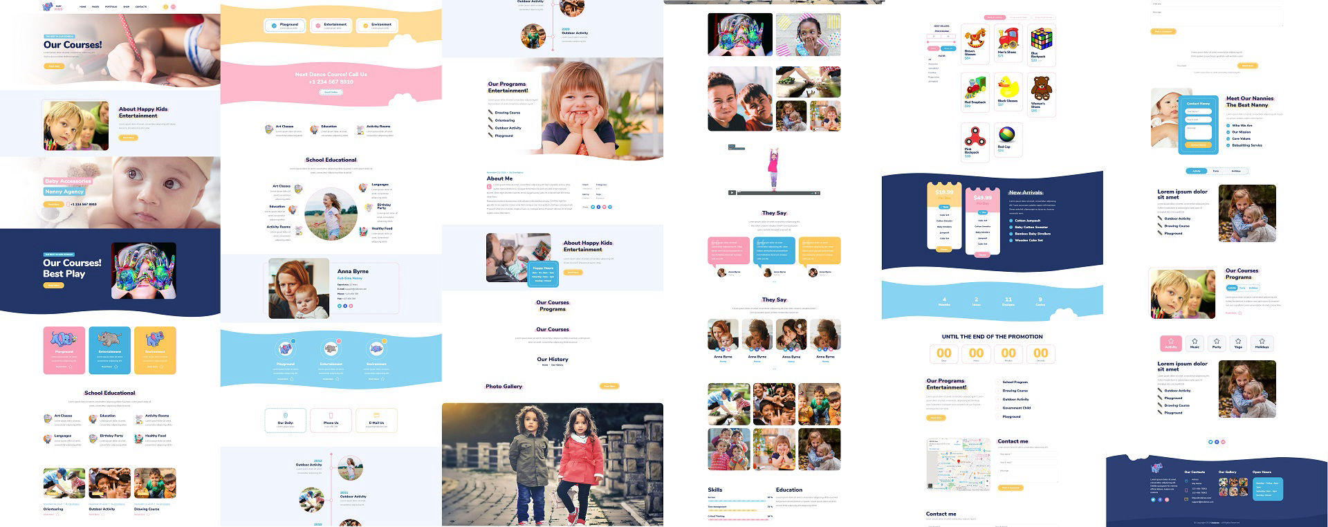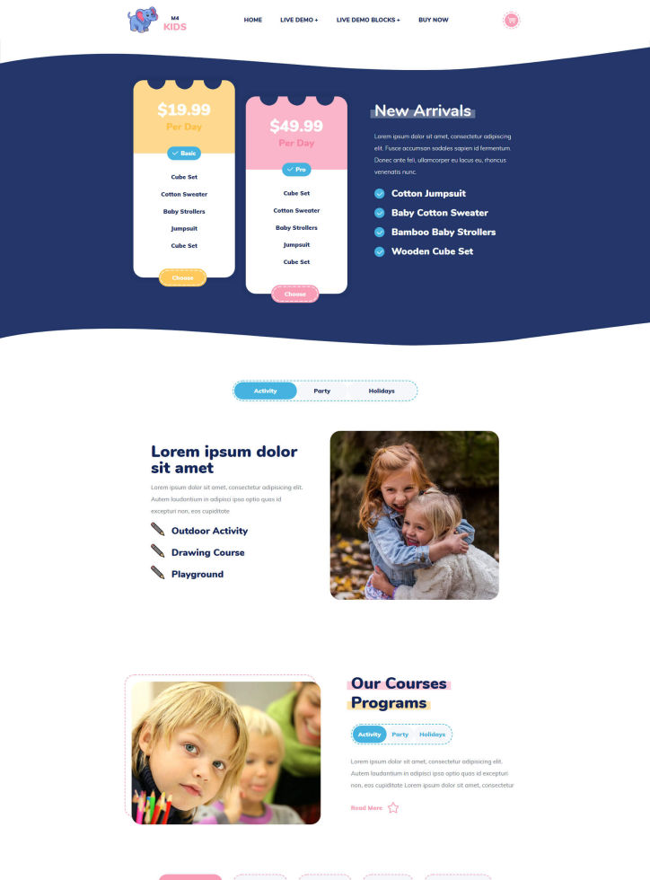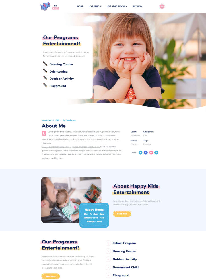 A cute website template perfect for preschools and babysitting. It also suits online stores selling children clothes and toys. Create a kids related site with ease!